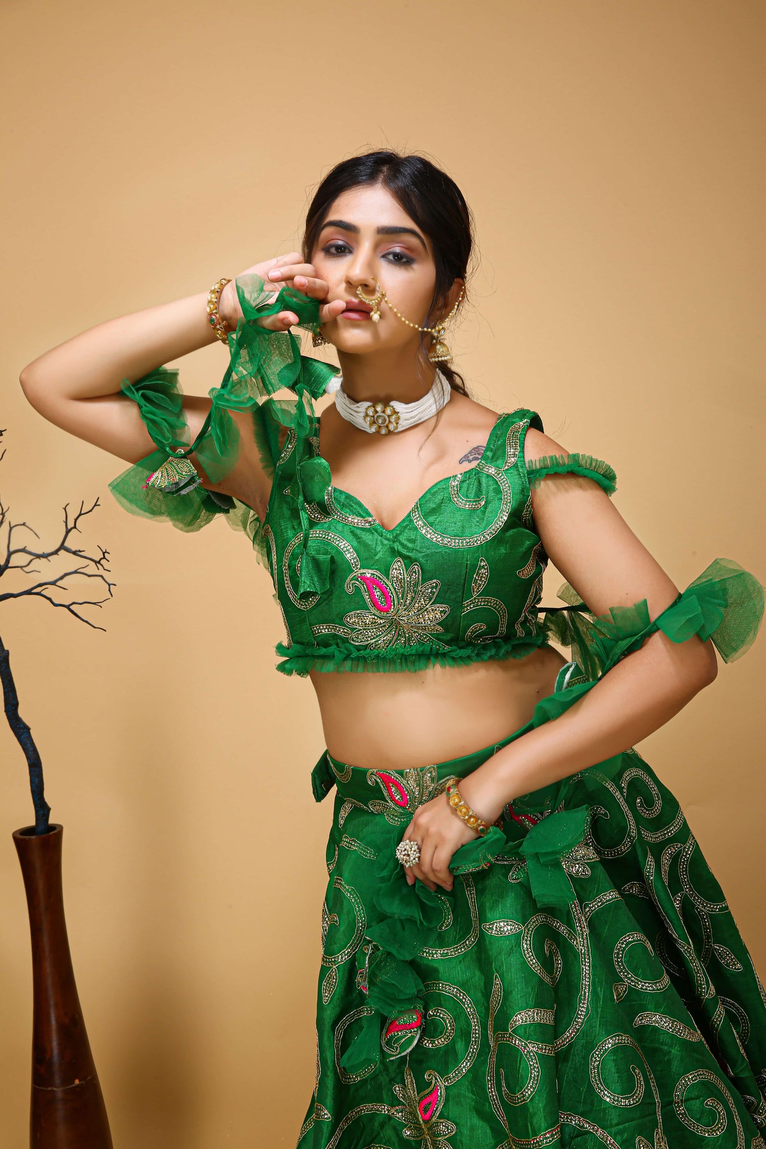Green Designer gown lengha lehenga Indian ethnic traditional wear Indian Suit Chania choli Party wear Green dress Wedding wear Function