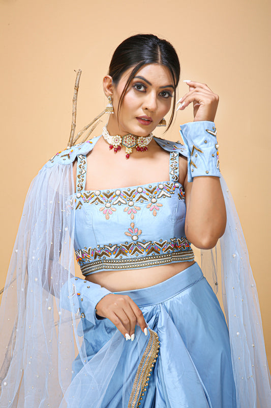 Stylish Sky Blue Wedding Party Wear Unique Peace