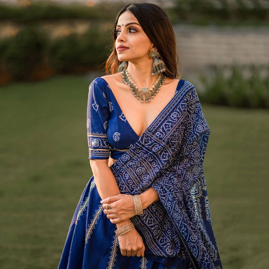 Teal Blue Thread Embroidery Art Silk Wedding Wear Lehenga Choli