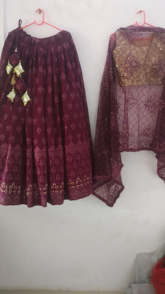 Embroidered Semi Stitched Maroon Lehenga Choli