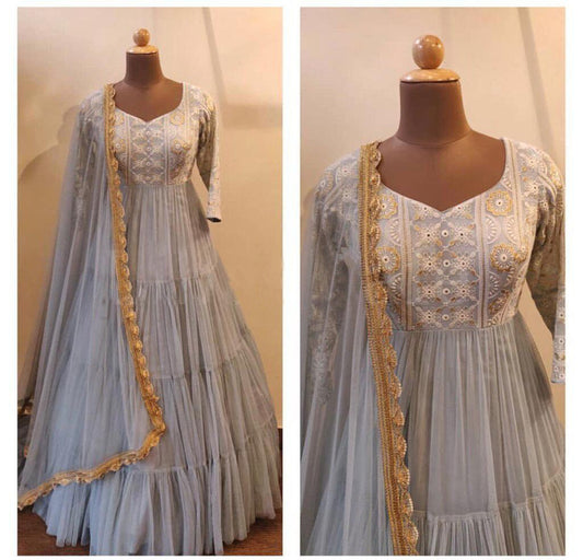 Golden Chikankari Pure Georgette hand Embroidered Lucknowi Chikan Lehenga Indian Handmade Chikankari Dyable Premium lehenga Lenga for women