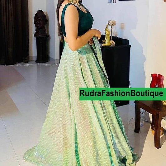 Green Designer gown lengha lehenga Indian ethnic traditional wear Indian Suit Chania choli Party wear Green dress Wedding wear Function 1