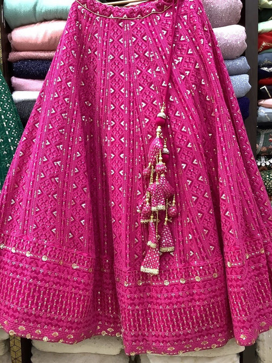 Indian Designer Wedding Party wear Pink Lehenga choli dupatta for girls and women custom stiched Lengha blouse thread embroidered lenga