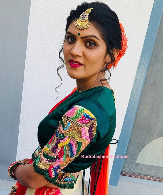 Green Readymade saree blouse for women party wear blouses Fancy saree blouse Handwork Choli Blouse for lehenga Bollywood sari Crop top 1