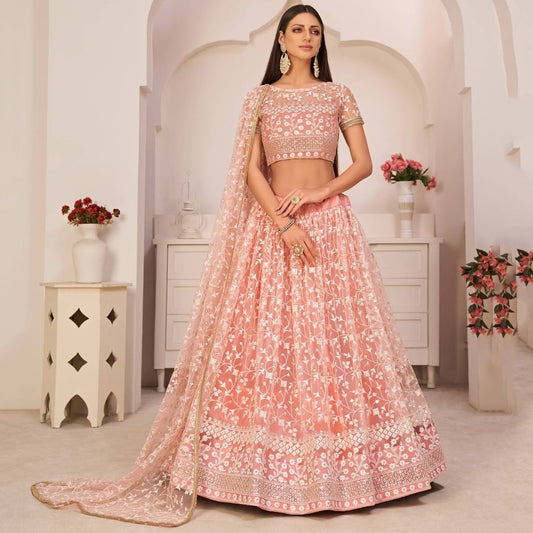 Pink Thread Embroidered Lehenga Choli Dupatta Custom Stiched Readymade Chikan Lengha Wedding wear Designer wear Bridal Lehenga Indian suit 1