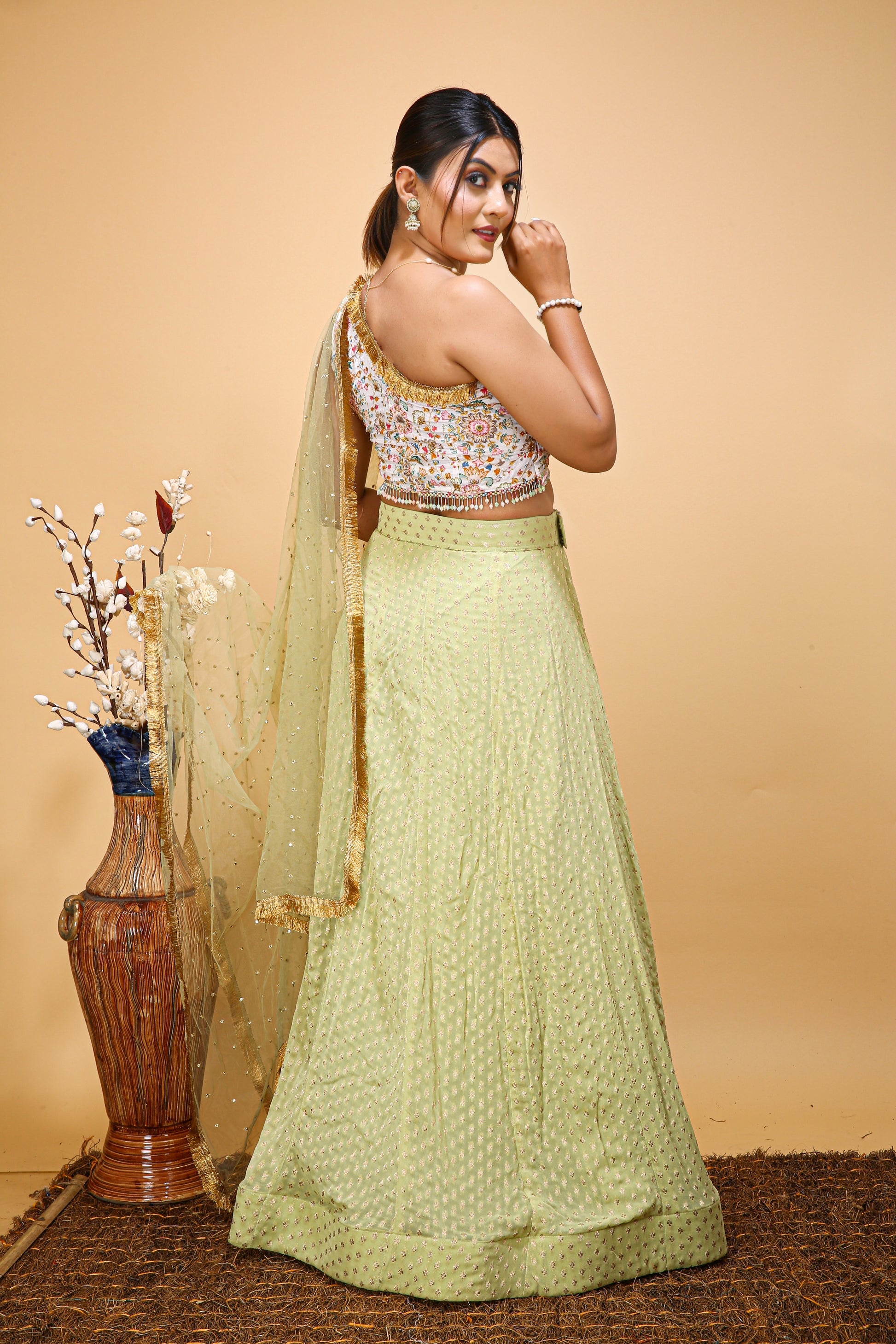 Title: Mesmerizing One Shoulder Slit Lehenga Choli - Perfect for Special Occasions!