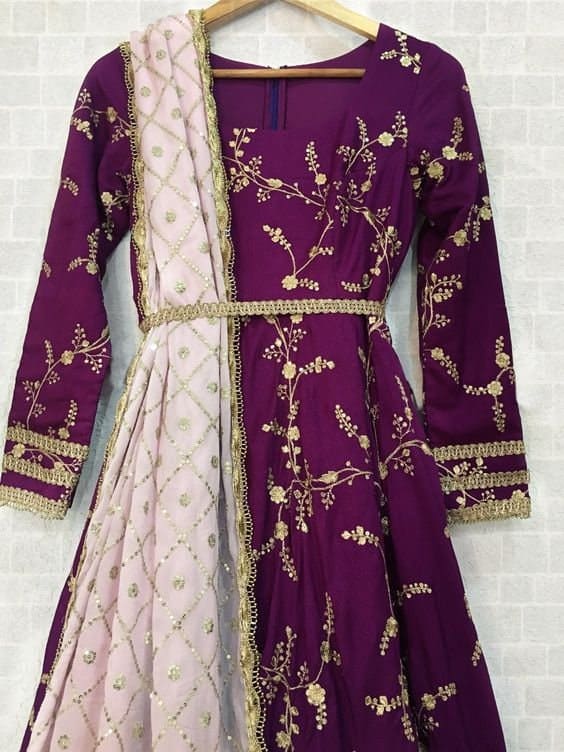 Designer Party wear Embroidered work gown with Designer Long Dupatta Wedding gown Indian Women Gown Purple Gown Indian Suit Gowns for women